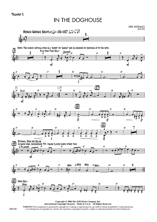 Digital Sheet Music for In the Doghouse - Trumpet 3 by Erik Morales scored for Jazz Ensemble; id:456049