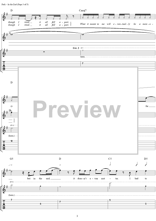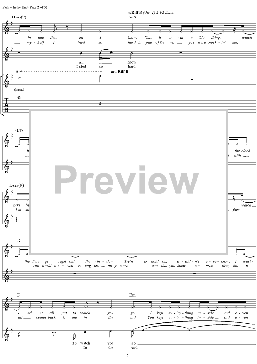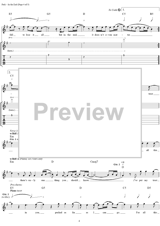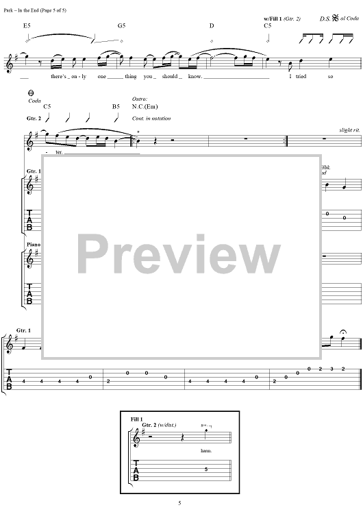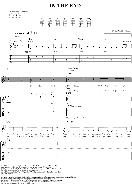 Digital Sheet Music for In the End by Linkin Park scored for Guitar Tab/Vocal; id:285783