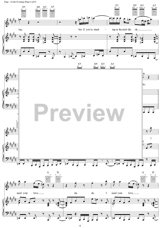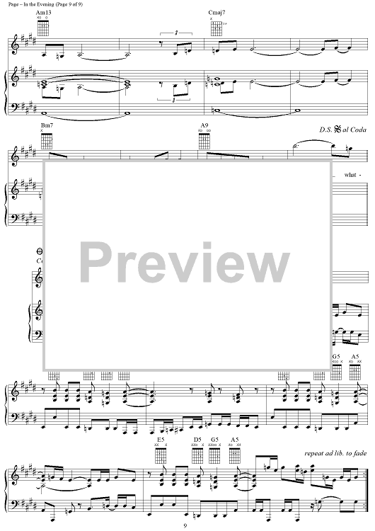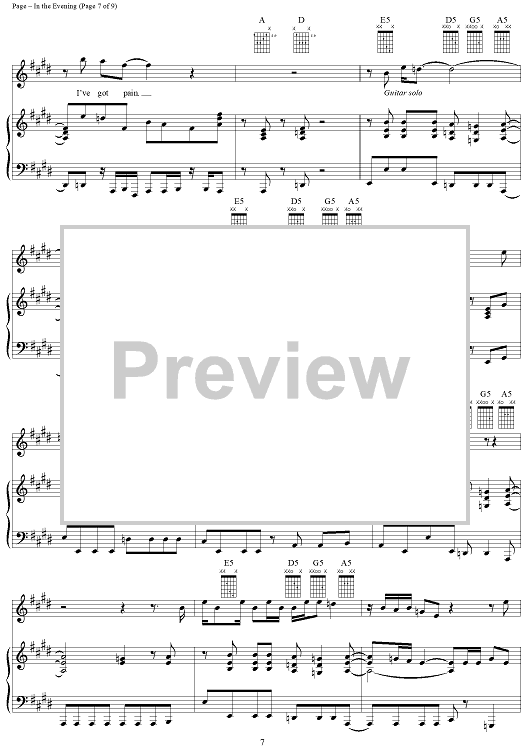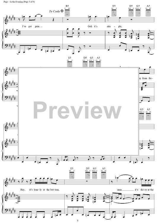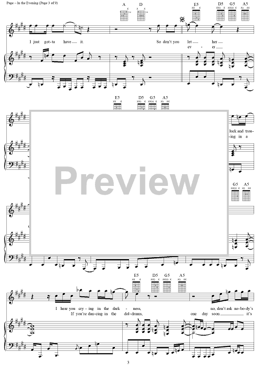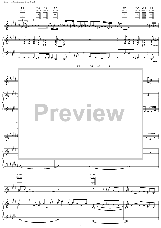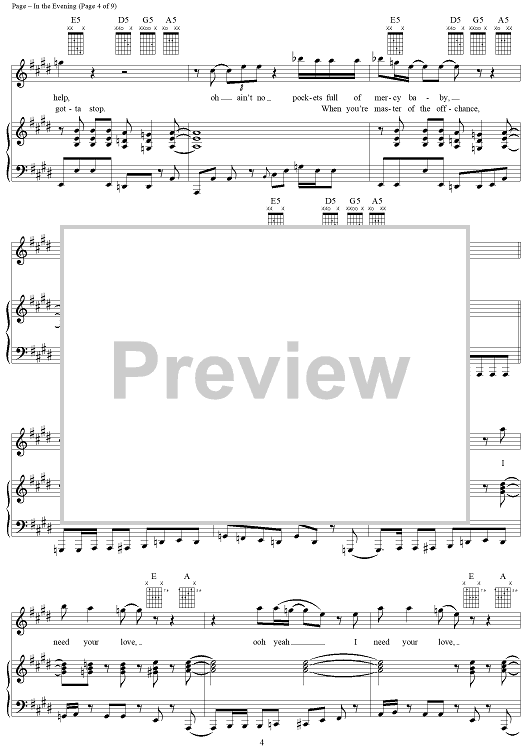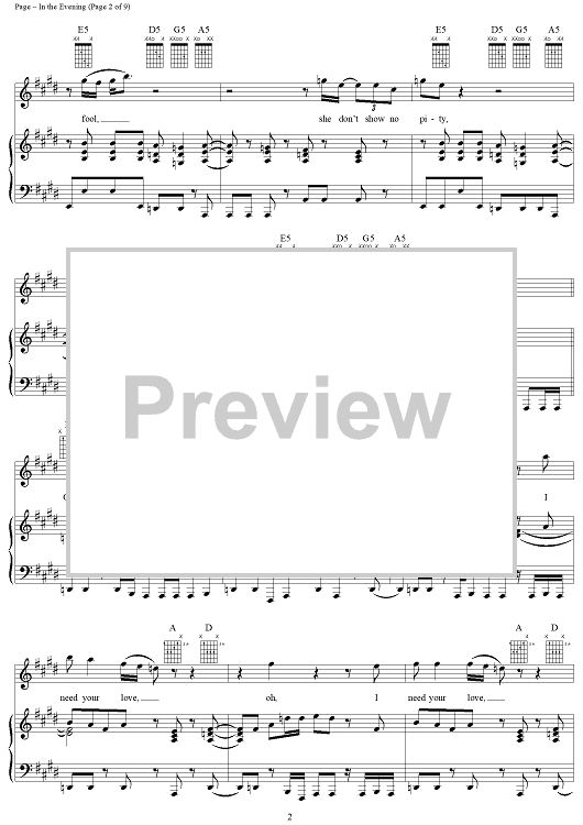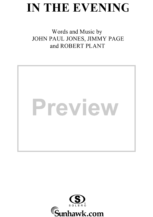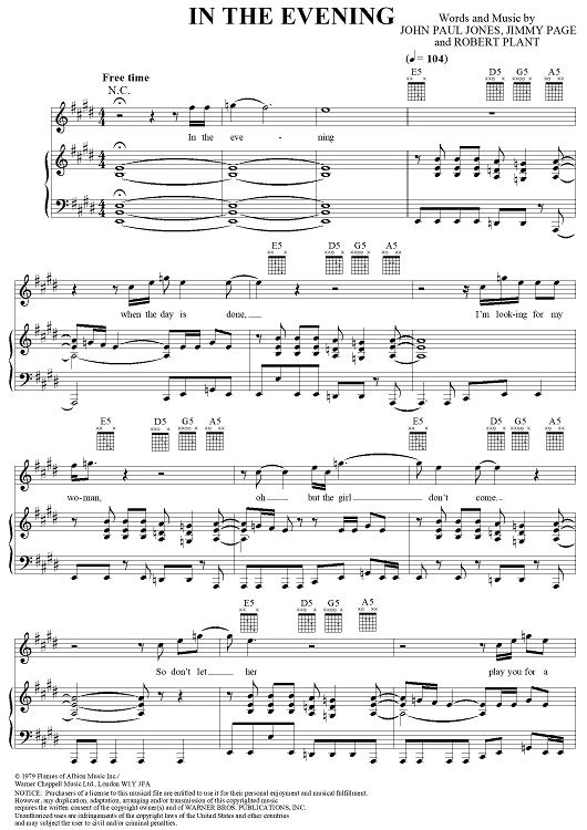 Digital Sheet Music for In the Evening by Jimmy Page, John Paul Jones, Led Zeppelin, Robert Plant scored for Piano/Vocal/Chords; id:119685