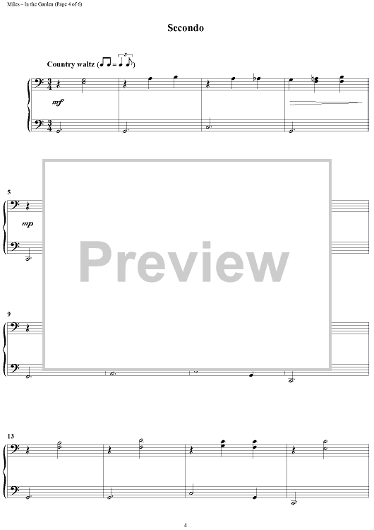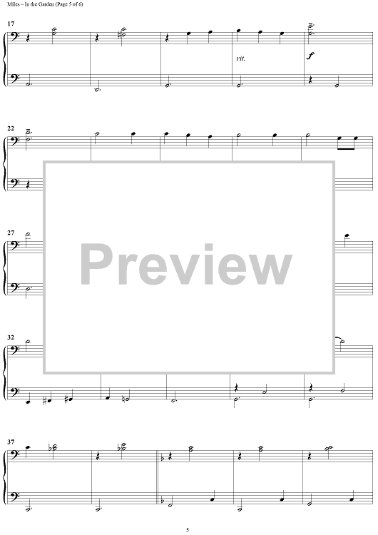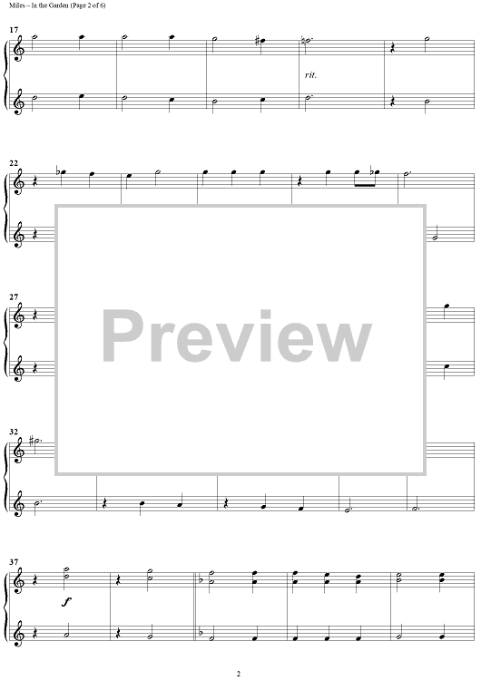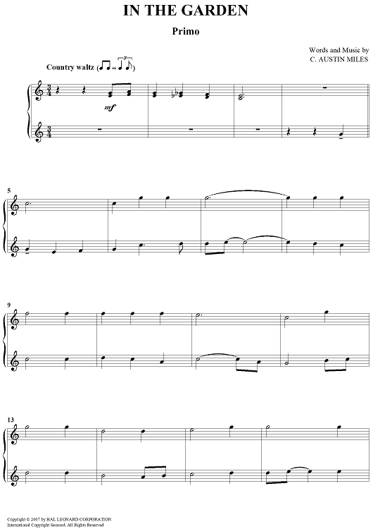 Digital Sheet Music for In The Garden by C. Austin Miles scored for 1 Piano, 4 Hands; id:402777