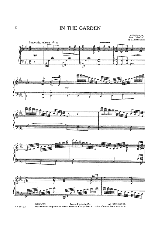 Digital Sheet Music for In The Garden by C. Austin Miles, John Innes scored for Piano Solo; id:433623