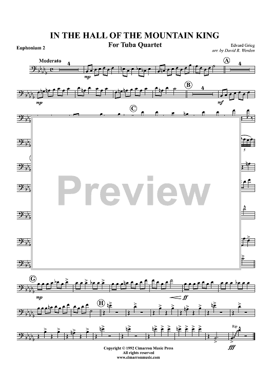 Digital Sheet Music for In the Hall of the Mountain King - Euphonium 2 BC/TC by Edvard Grieg, David Werden scored for Tuba Quartet; id:312782