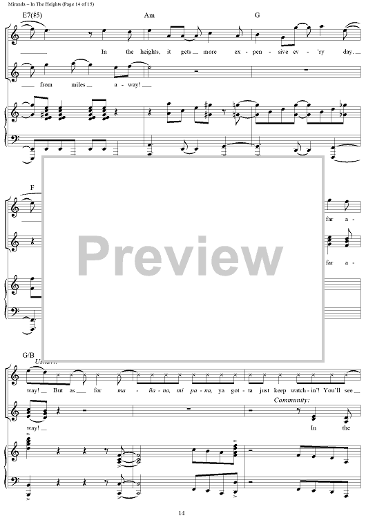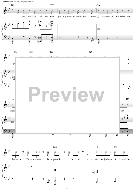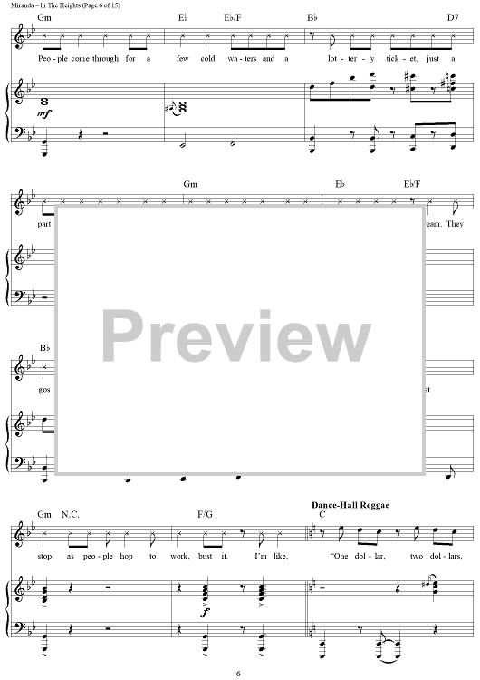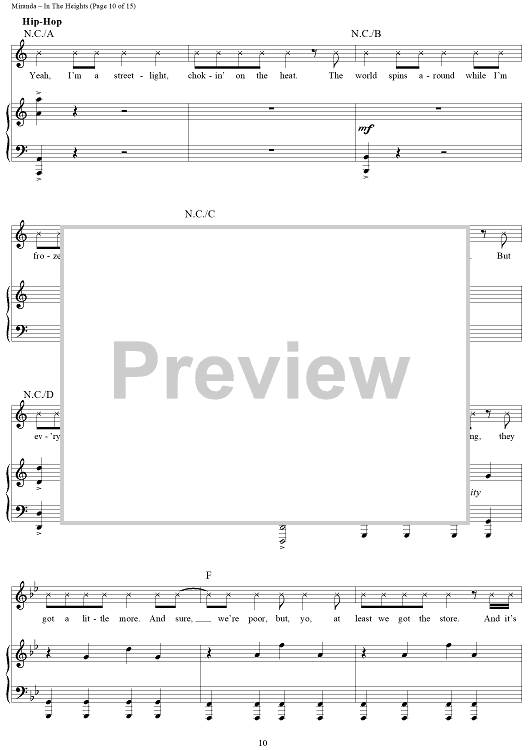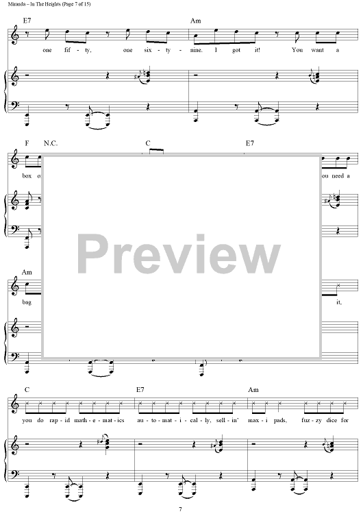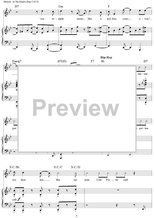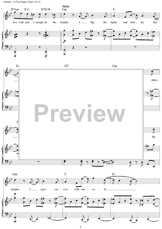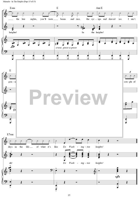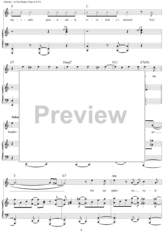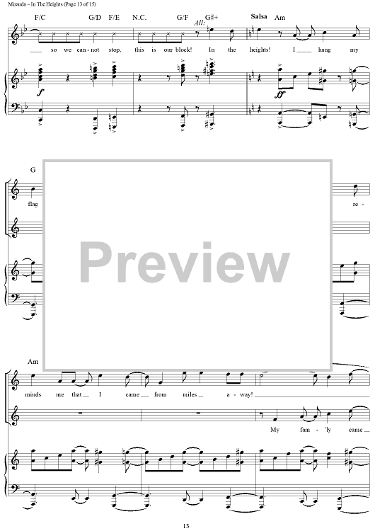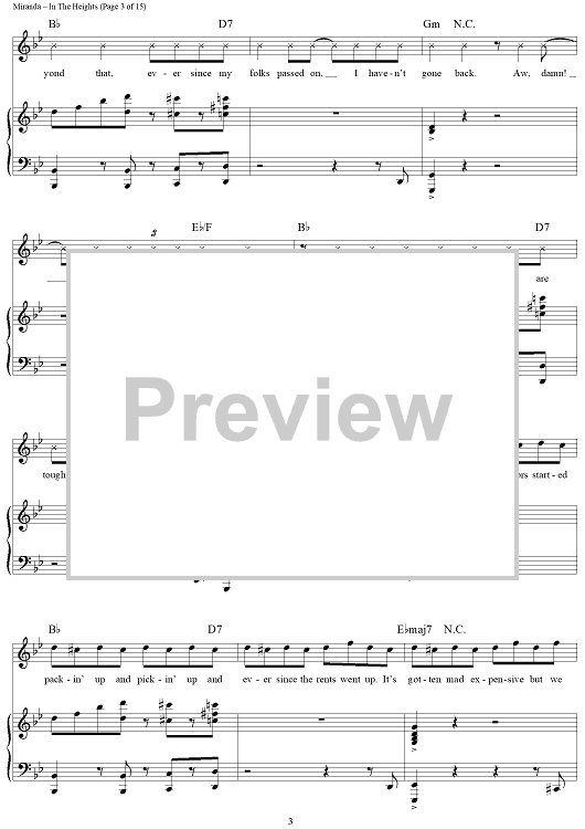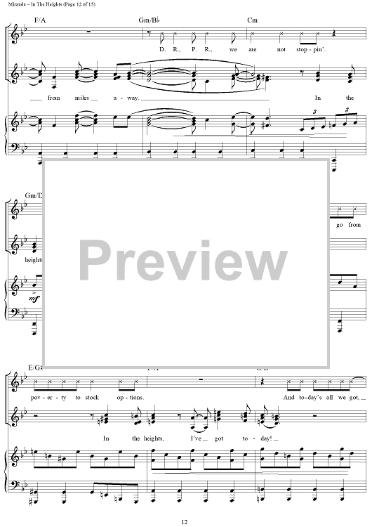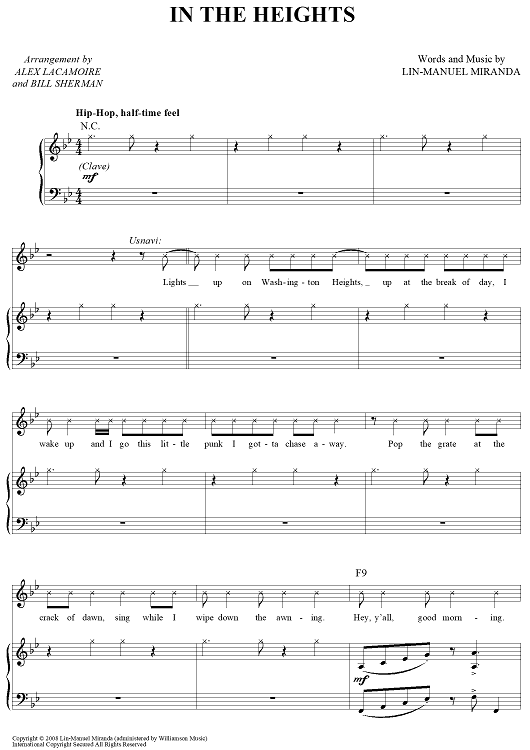 Digital Sheet Music for In the Heights by Lin-Manuel Miranda, Alex Lacamoire, Bill Sherman scored for Piano/Vocal/Chords; id:457333