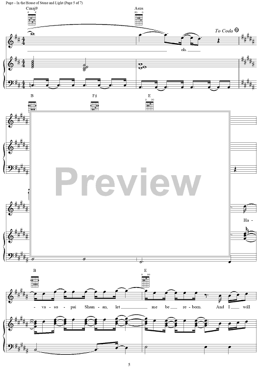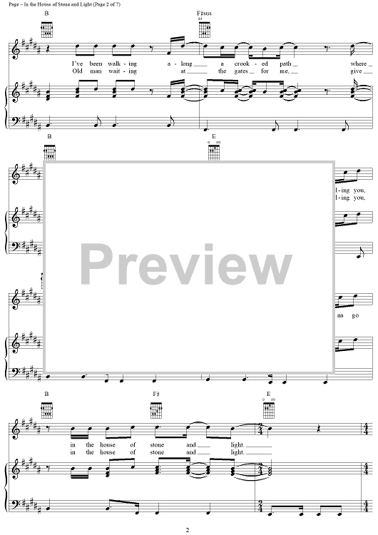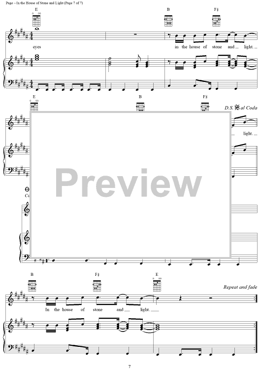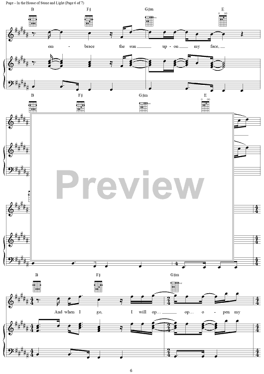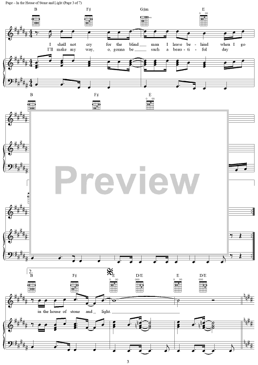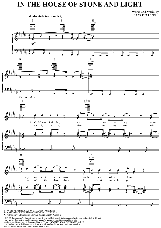 Digital Sheet Music for In the House of Stone and Light by Martin Page scored for Piano/Vocal/Chords; id:254716