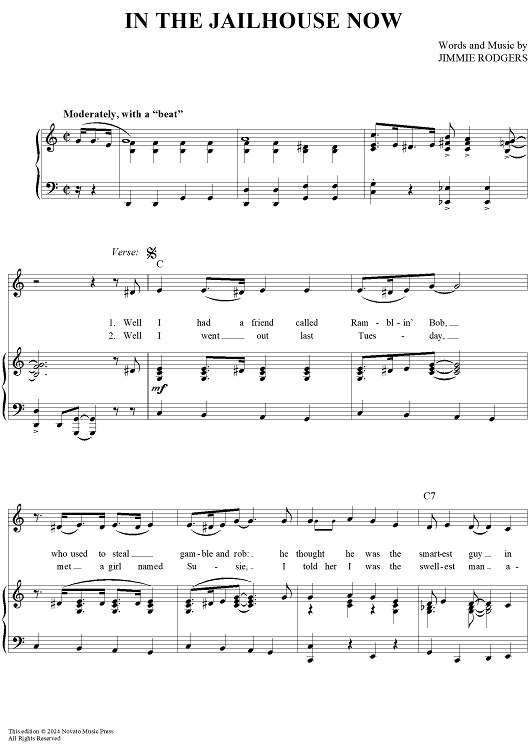 "In The Jailhouse Now" Sheet Music by Jimmie Rodgers