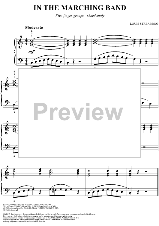 Digital Sheet Music for In the Marching Band by Louis Streabbog scored for Easy Piano; id:295892