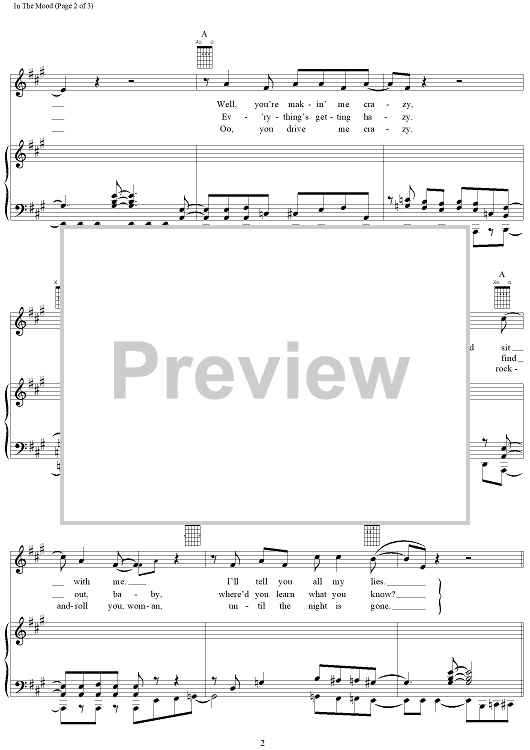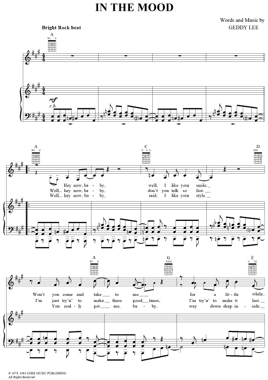 Digital Sheet Music for In The Mood by Rush, Geddy Lee scored for Piano/Vocal/Chords; id:250538