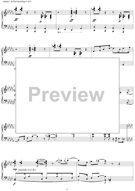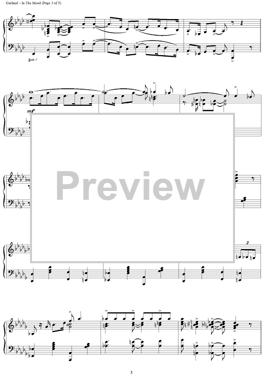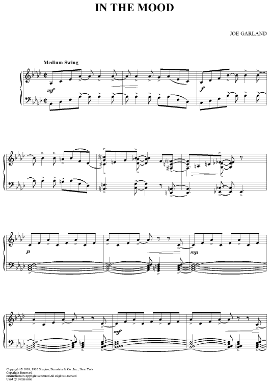 Digital Sheet Music for In The Mood by Joe Garland scored for Piano Solo; id:458320