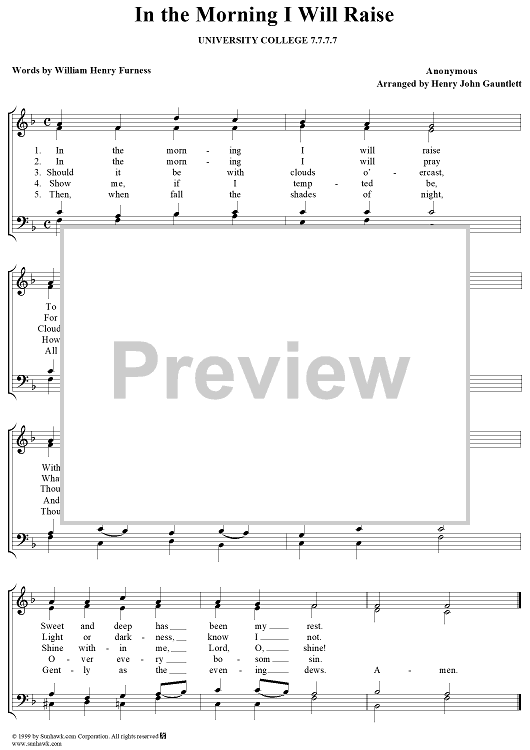 "In the Morning I Will Raise" Sheet Music by Henry J. Gauntlett