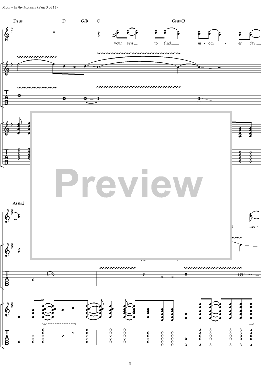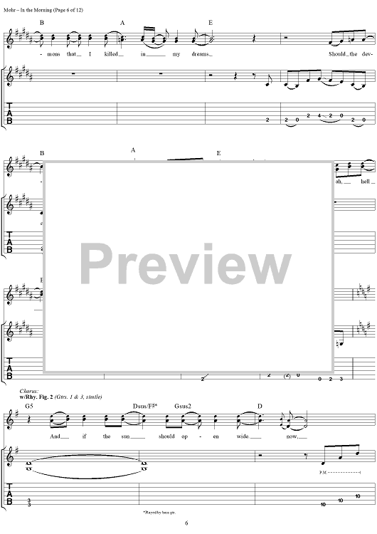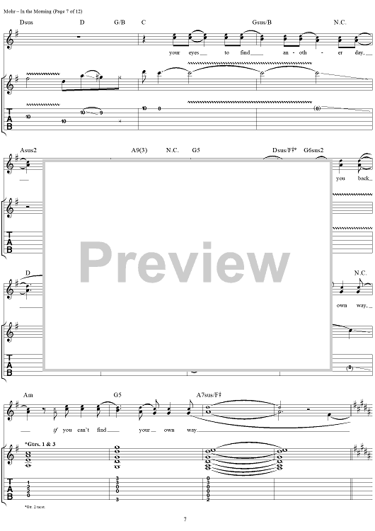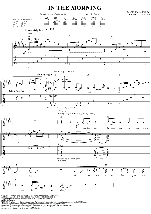 Digital Sheet Music for In the Morning by Todd Park Mohr, Big Head Todd and the Monsters scored for Guitar Tab/Vocal; id:252510