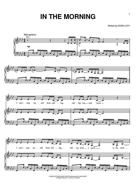 Digital Sheet Music for In The Morning by Adam Levy, Norah Jones scored for Piano/Vocal/Chords; id:374599