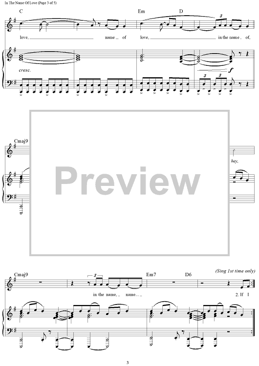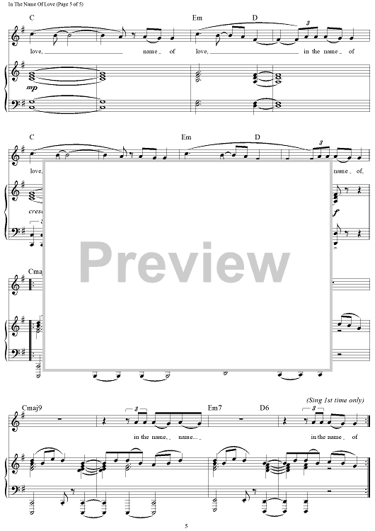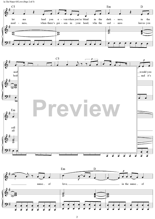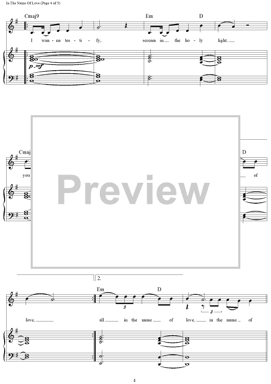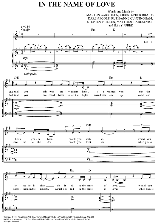 Digital Sheet Music for In the Name of Love by Ruth-Anne Cunningham, Karen Poole, Matt Radosevich, Chris Braide, Ilsey Juber, Stephen Philibin, Bebe Rexha, Martijn Garritsen, Martin Garrix scored for Piano/Vocal/Chords; id:461108