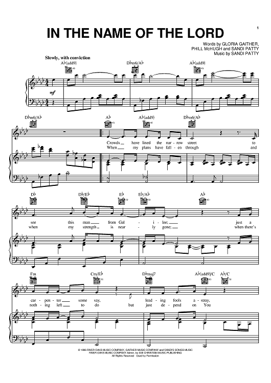 Digital Sheet Music for In The Name Of The Lord by Pat Boone, Phill McHugh, Gloria Gaither, Sandi Patty scored for Piano/Vocal/Chords; id:386459