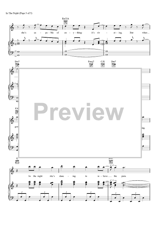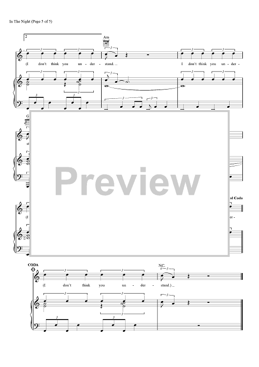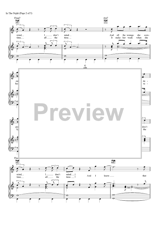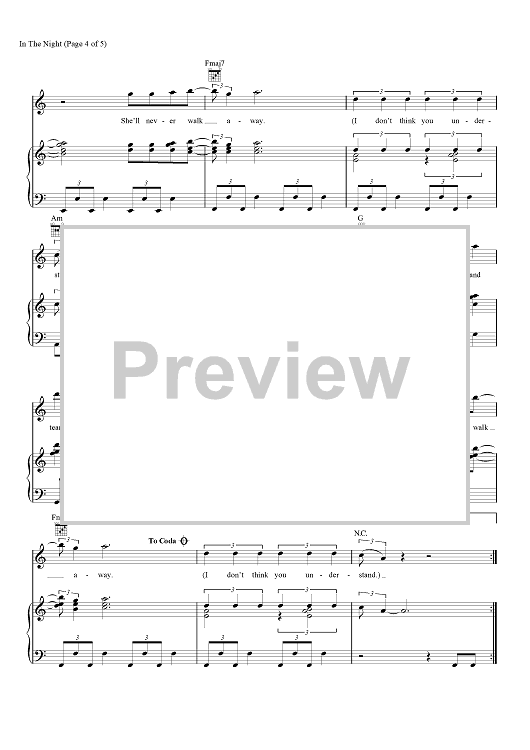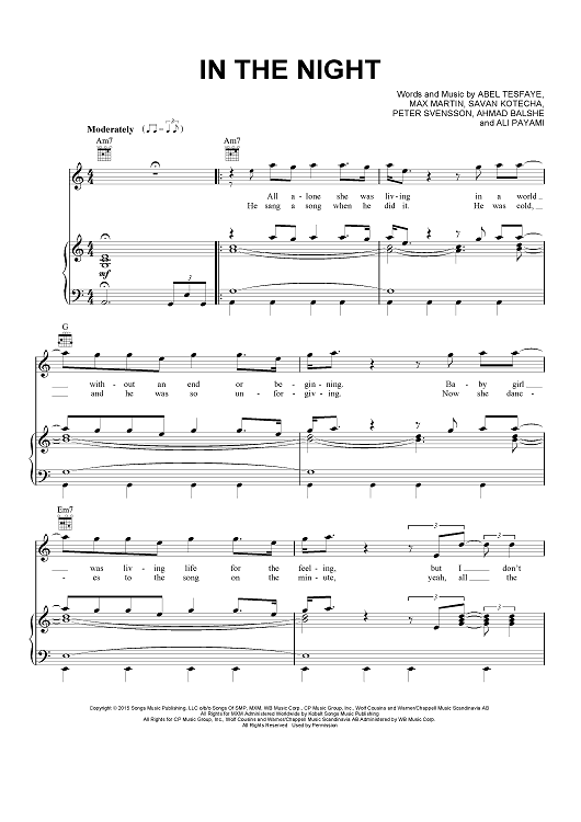 Digital Sheet Music for In The Night by Max Martin, Peter Svensson, Savan Kotecha, Ali Payami, Ahmad Balshe, Abel Tesfaye, The Weeknd scored for Piano/Vocal/Chords; id:457605