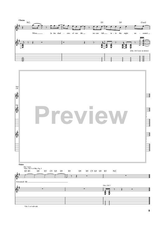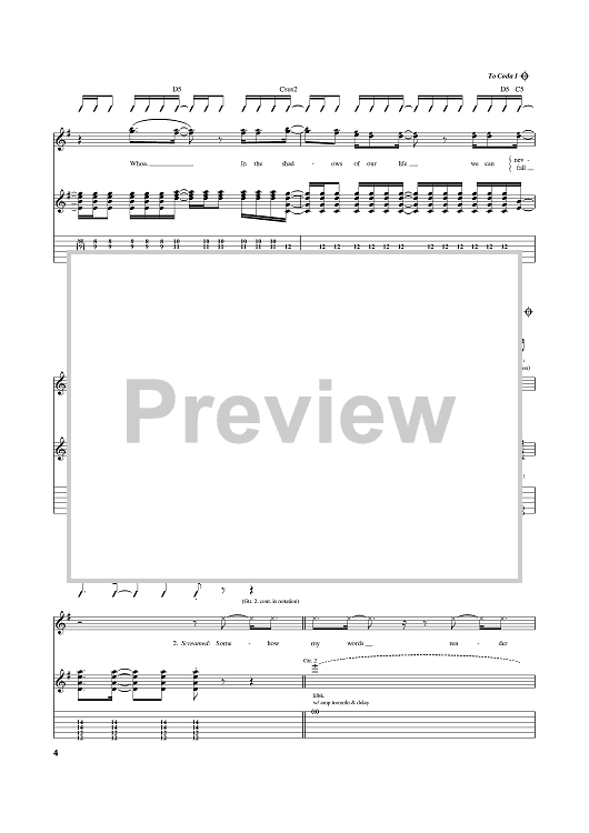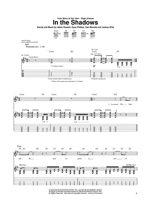 Digital Sheet Music for In The Shadows by Dan Marsala, Ryan Phillips, Adam Russell, Story Of The Year scored for Guitar Tab; id:374624