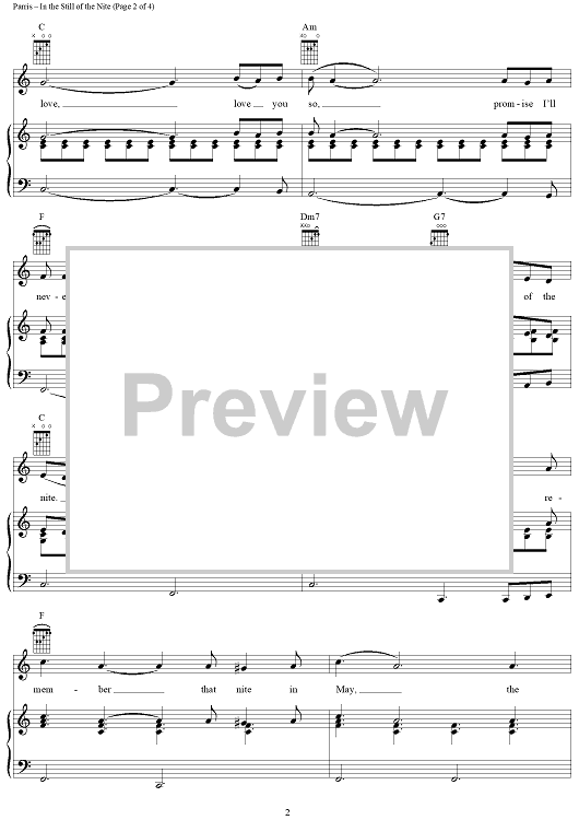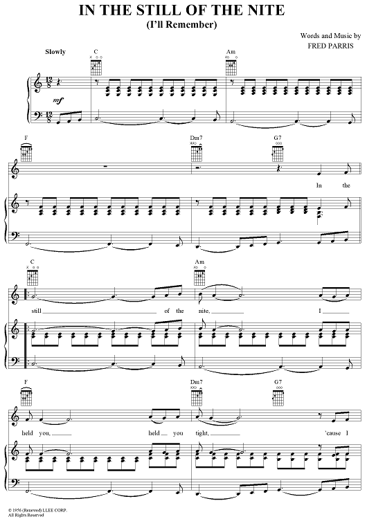 Digital Sheet Music for In the Still of the Nite (I'll Remember) by Boyz II Men, Fred Parris, The Five Satins scored for Piano/Vocal/Chords; id:382291