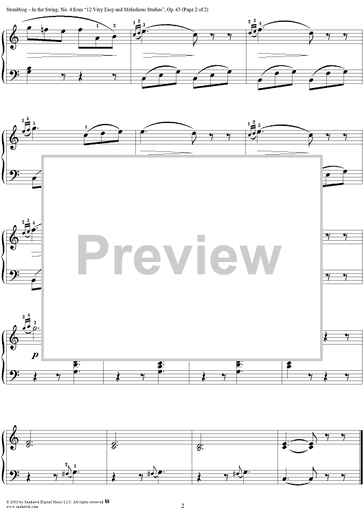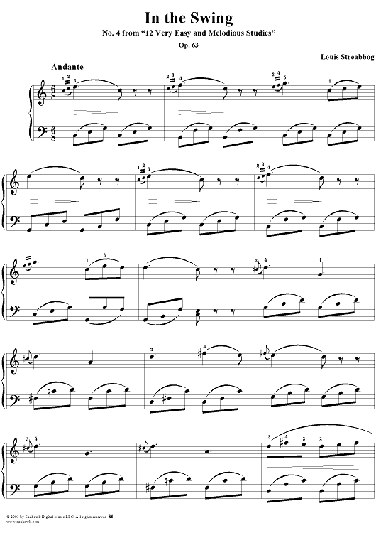 Digital Sheet Music for In the Swing, Op. 63, No. 4, from "Twelve Very Easy and Melodious Studies" by Louis Streabbog scored for Piano Solo; id:294868