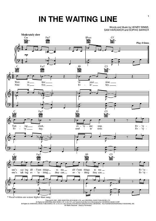 Digital Sheet Music for In The Waiting Line by Sophie Barker, Henry Binns, Sam Hardaker, Zero 7 scored for Piano/Vocal/Chords; id:384077