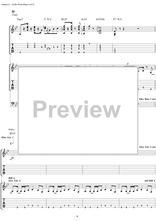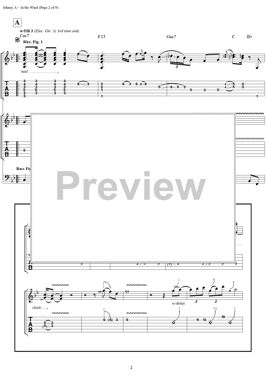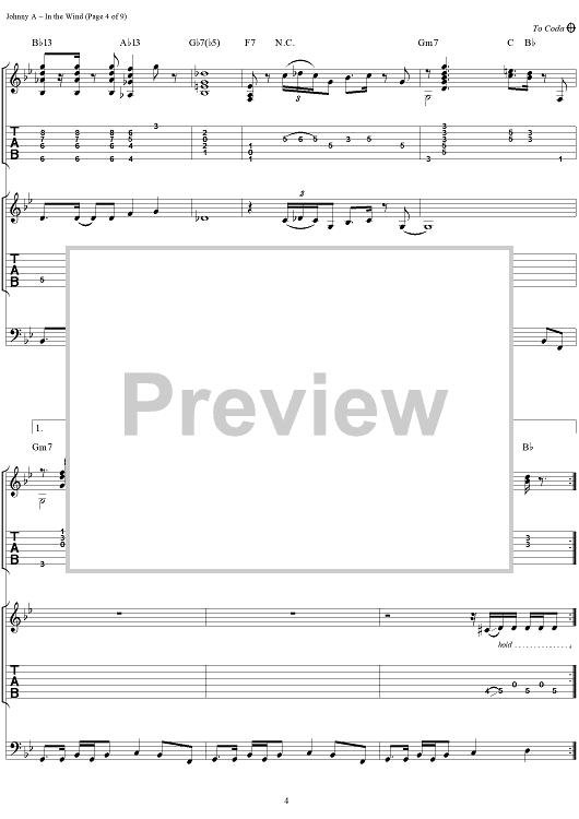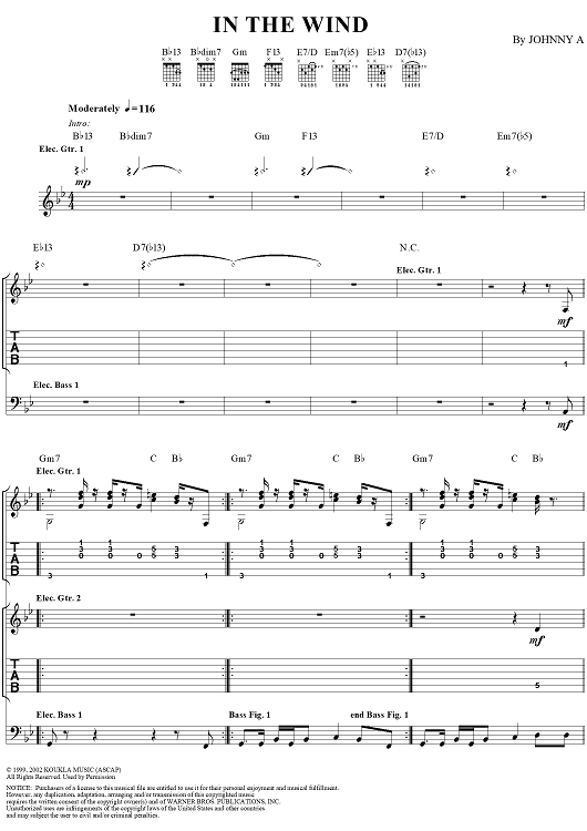 Digital Sheet Music for In the Wind by Johnny A. scored for Guitar Tab/Bass; id:289631