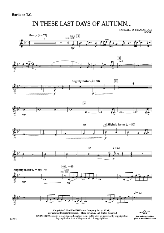 Digital Sheet Music for In These Last Days of Autumn... - Baritone TC by Randall D. Standridge scored for Concert Band; id:497110