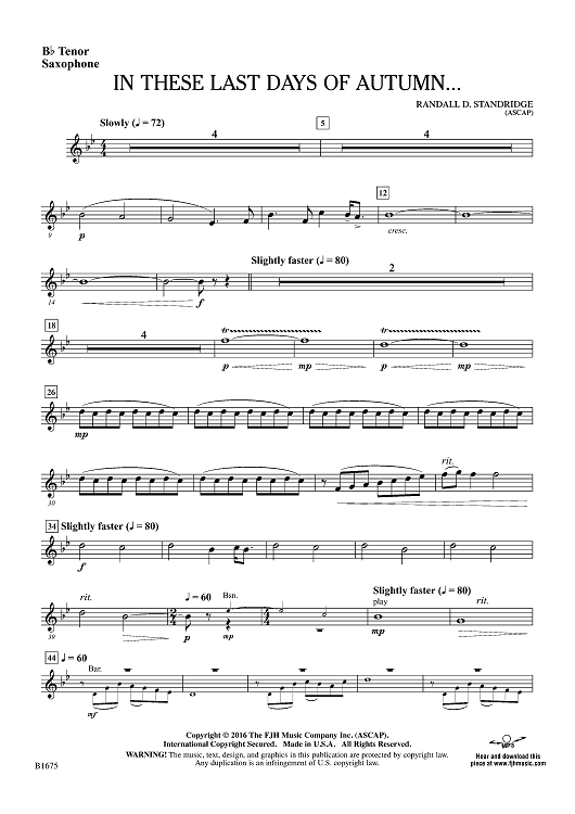 Digital Sheet Music for In These Last Days of Autumn... - Bb Tenor Sax by Randall D. Standridge scored for Concert Band; id:497101