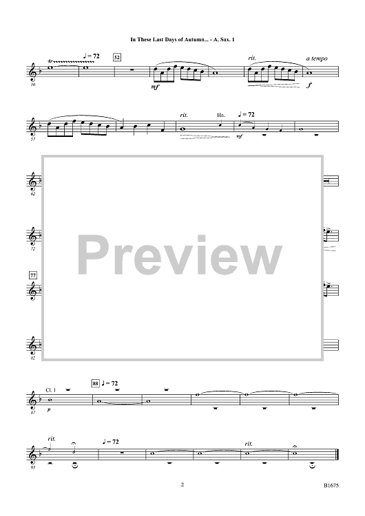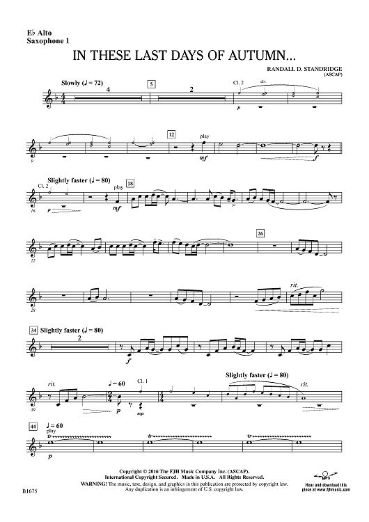 Digital Sheet Music for In These Last Days of Autumn... - Eb Alto Sax 1 by Randall D. Standridge scored for Concert Band; id:497099