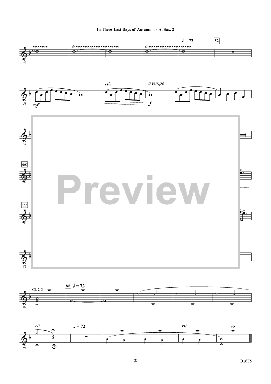 Digital Sheet Music for In These Last Days of Autumn... - Eb Alto Sax 2 by Randall D. Standridge scored for Concert Band; id:497100
