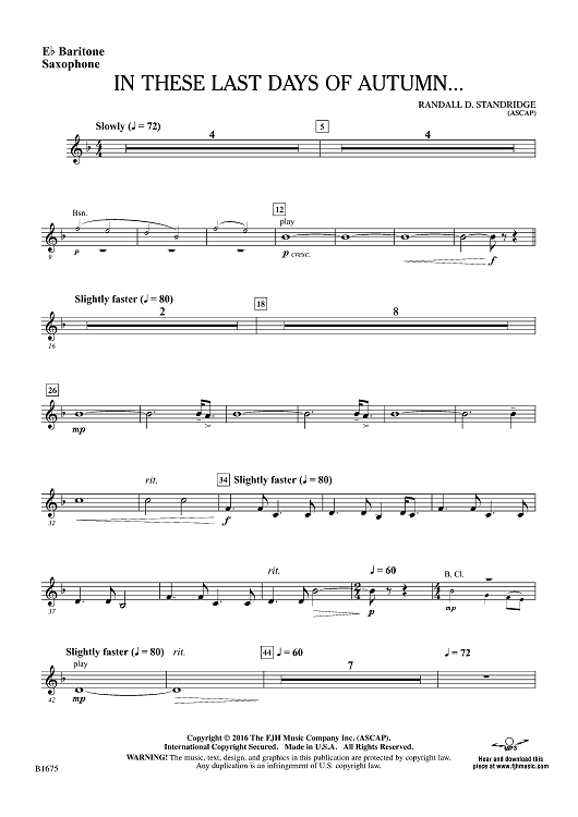 Digital Sheet Music for In These Last Days of Autumn... - Eb Baritone Sax by Randall D. Standridge scored for Concert Band; id:497102
