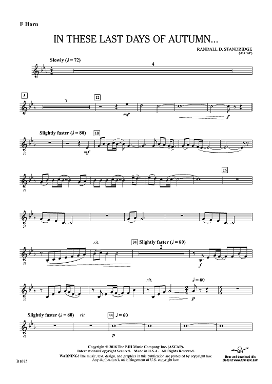 Digital Sheet Music for In These Last Days of Autumn... - F Horn by Randall D. Standridge scored for Concert Band; id:497106