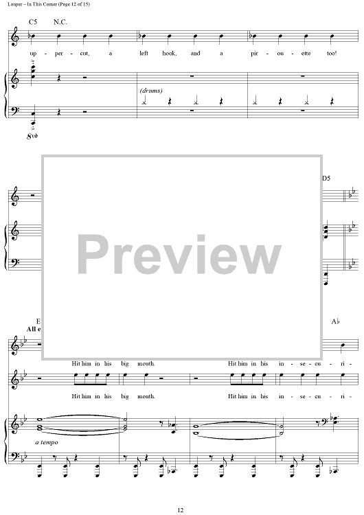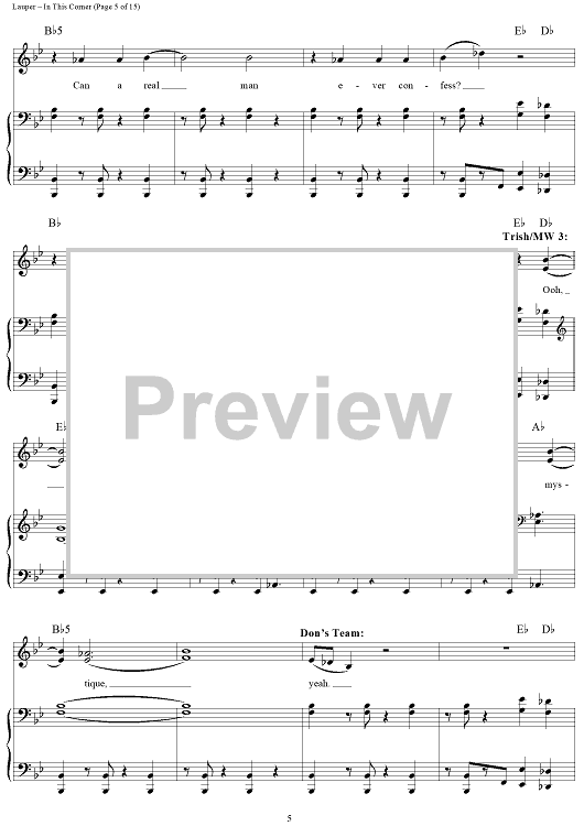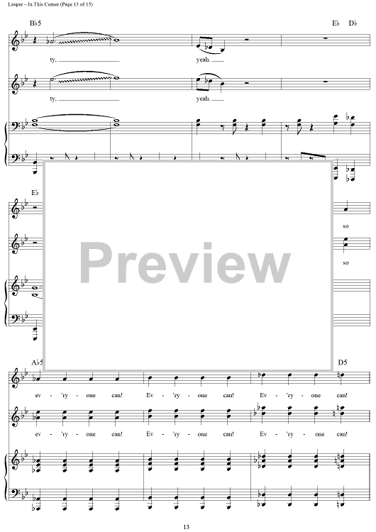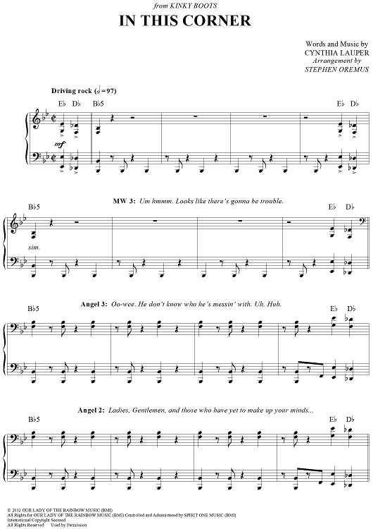 Digital Sheet Music for In This Corner by Cyndi Lauper, Stephen Oremus scored for Piano/Vocal/Chords; id:436613