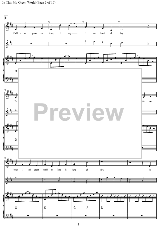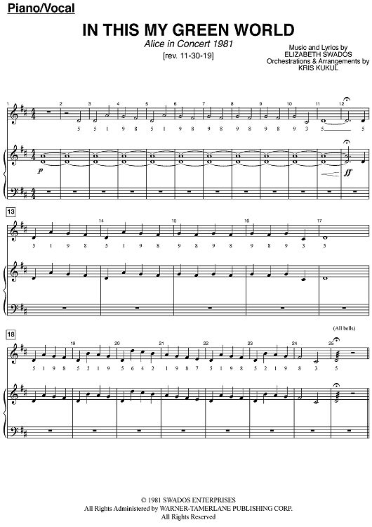 Digital Sheet Music for In This My Green World by Elizabeth Swados, Kris Kukul scored for Piano/Vocal/Chords; id:469448