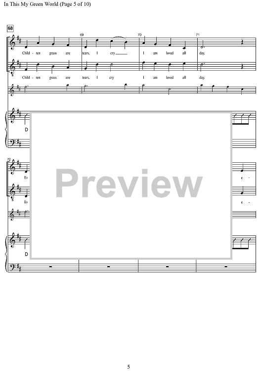 "In This My Green World" Sheet Music by Elizabeth Swados