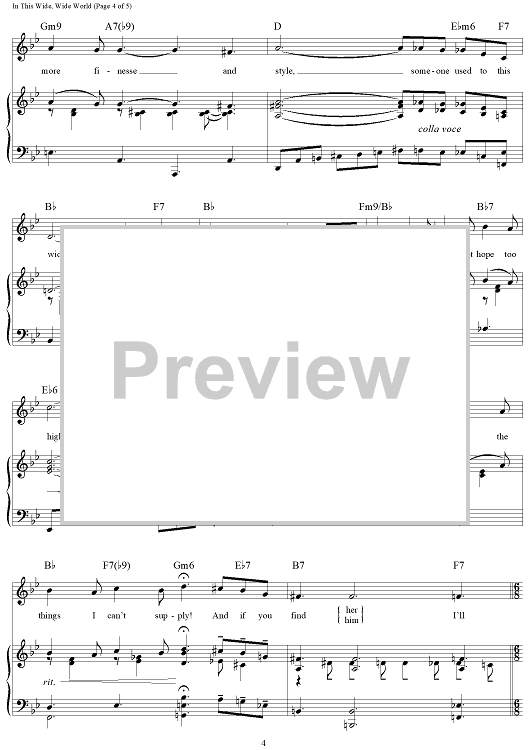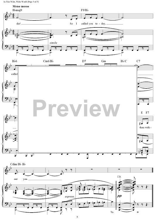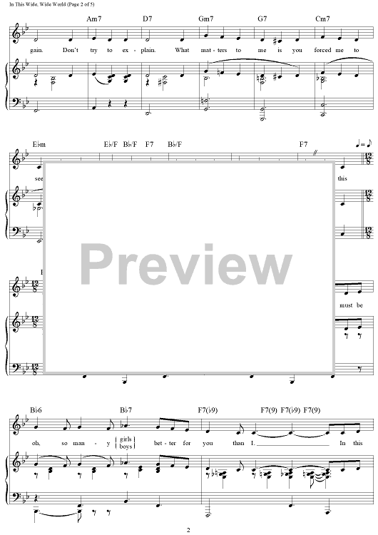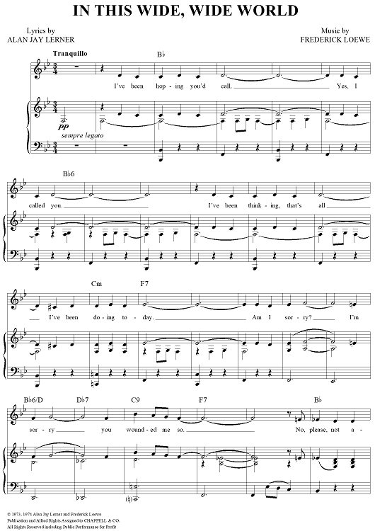 Digital Sheet Music for In This Wide, Wide World by Frederick Loewe, Alan Jay Lerner scored for Piano/Vocal/Chords; id:297852