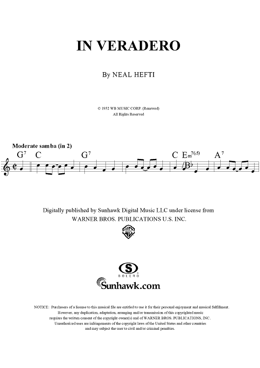 Digital Sheet Music for In Veradero by Stan Kenton, Neal Hefti scored for Lead Sheet; id:266912