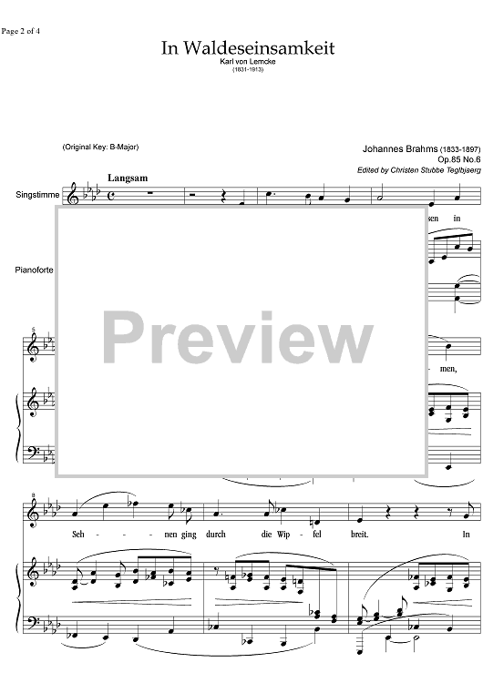 Digital Sheet Music for In Waldeseinsamkeit Op.85 No. 6 by , Johannes Brahms scored for Mezzo-soprano or Baritone/Piano; id:336973