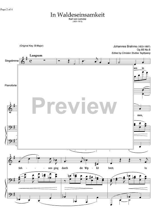 "In Waldeseinsamkeit Op.85 No. 6" Sheet Music by Johannes Brahms
