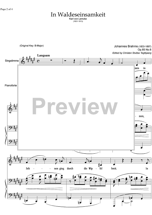 "In Waldeseinsamkeit Op.85 No. 6" Sheet Music by Johannes Brahms