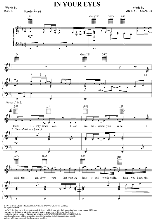 Digital Sheet Music for In Your Eyes by Michael Masser, Dan Hill scored for Piano/Vocal/Chords; id:251333