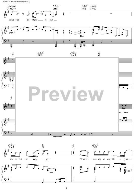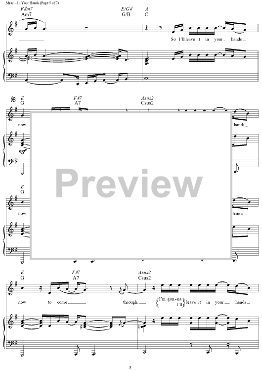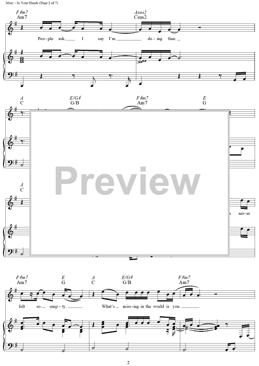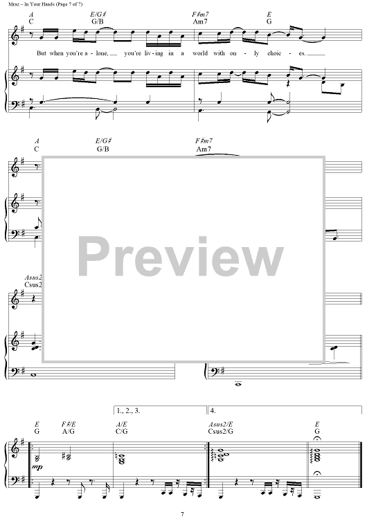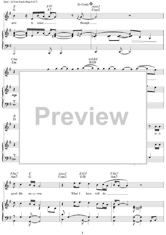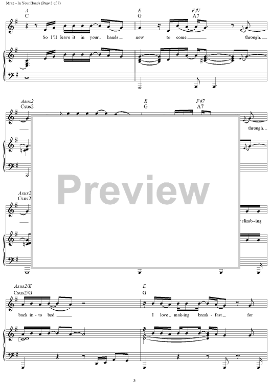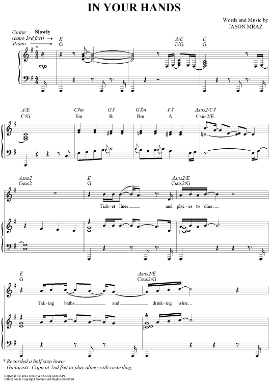 Digital Sheet Music for In Your Hands by Jason Mraz scored for Piano/Vocal/Chords; id:445465