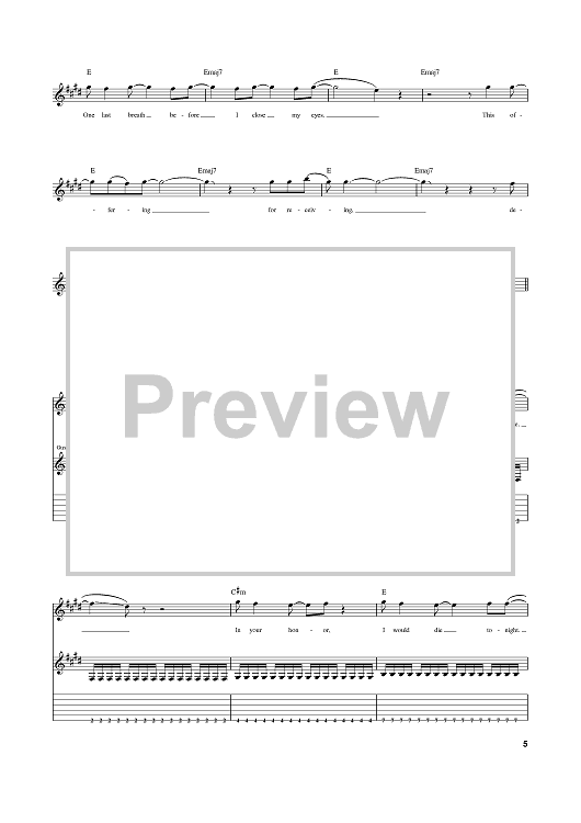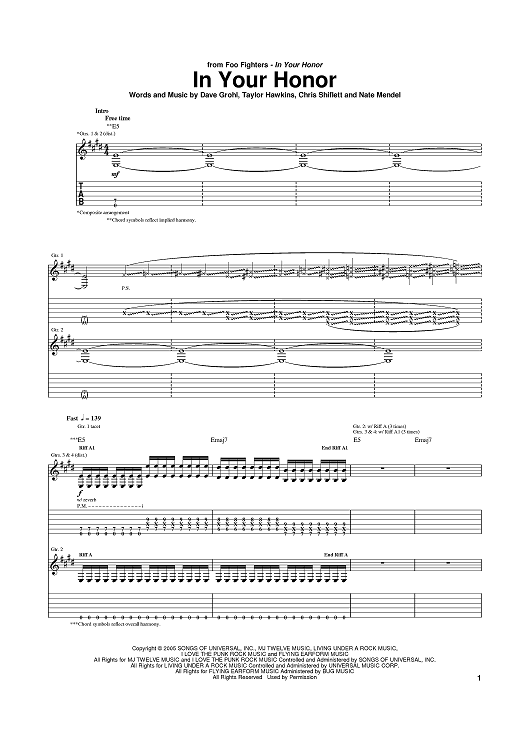 Digital Sheet Music for In Your Honor by Foo Fighters, Dave Grohl, Taylor Hawkins, Nate Mendel, Chris Shiflett scored for Guitar Tab; id:386762