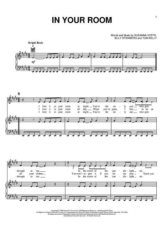 Digital Sheet Music for In Your Room by Billy Steinberg, Tom Kelly, Susanna Hoffs, The Bangles scored for Piano/Vocal/Chords; id:382094