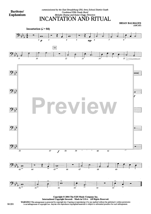 Digital Sheet Music for Incantation and Ritual - Baritone/Euphonium by Brian Balmages scored for Concert Band; id:443160