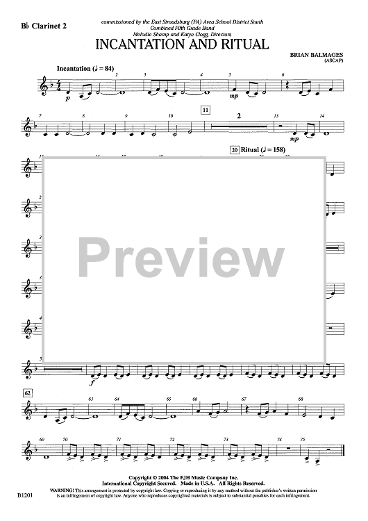 Digital Sheet Music for Incantation and Ritual - Bb Clarinet 2 by Brian Balmages scored for Concert Band; id:443151