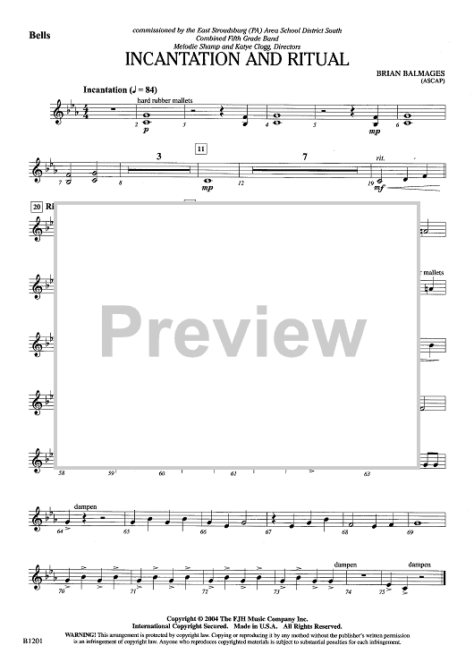 "Incantation and Ritual - Bells" Sheet Music by Brian Balmages