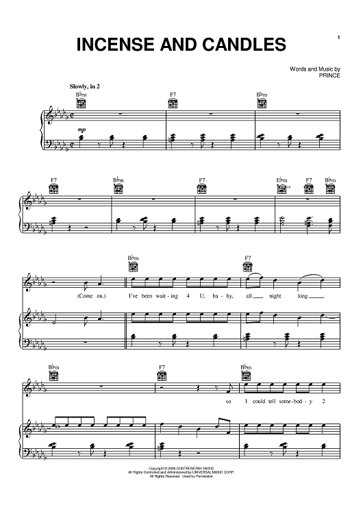Digital Sheet Music for Incense And Candles by Prince scored for Piano/Vocal/Chords; id:391053