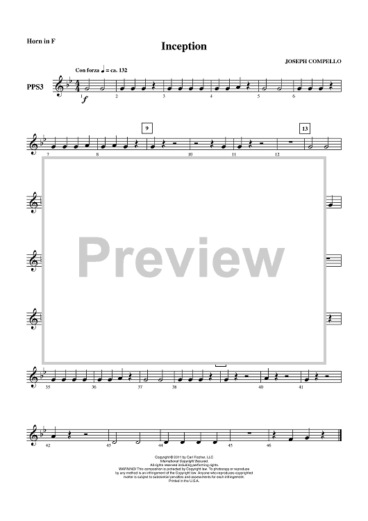 "Inception - Horn in F" Sheet Music by Joseph Compello