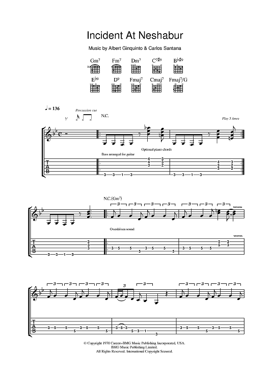 Digital Sheet Music for Incident At Neshabur by Santana, Albert Ginquinto scored for Guitar Tab; id:398689