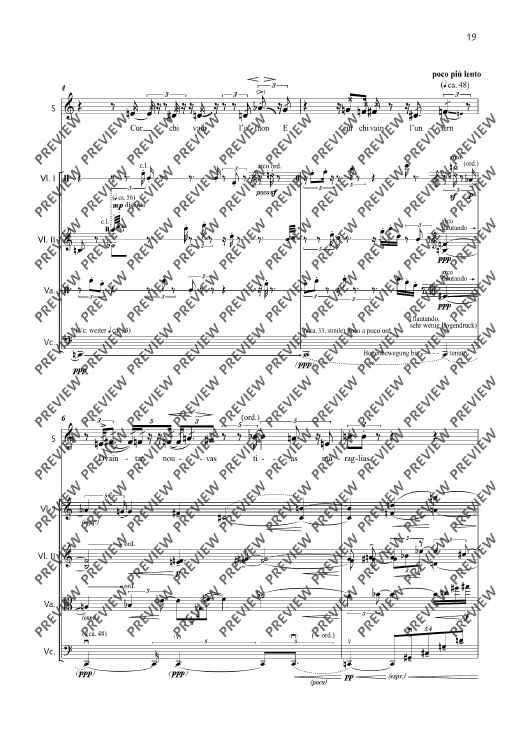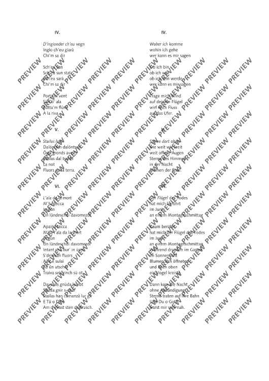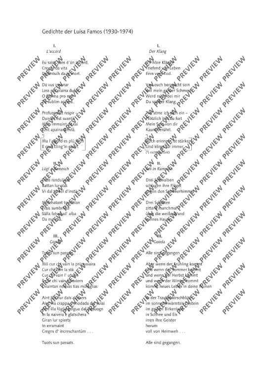 Die sechstteilige Komposition für Sopran und Streichquartett entstand im Auftrag des Lucerne Festival. In den vertonten rätoromanischen Gedichten der Schweizer Literatin Luisa Famos stehen die Themen Tod, Trauer und Hoffnung im Mittelpunkt.