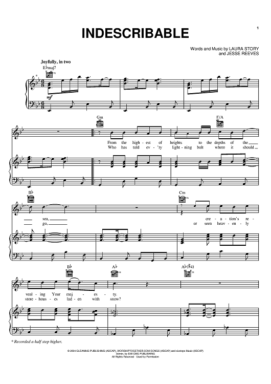 Digital Sheet Music for Indescribable by Chris Tomlin, Jesse Reeves, Laura Story scored for Piano/Vocal/Chords; id:394628