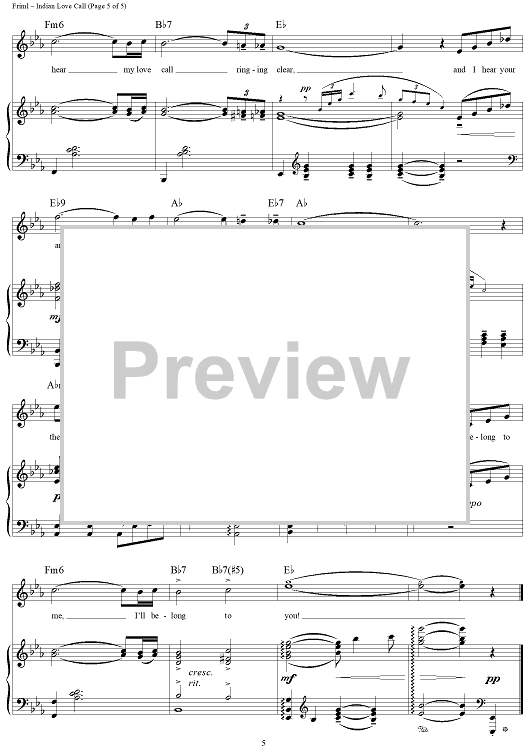 Digital Sheet Music for Indian Love Call by Oscar Hammerstein II, Otto Harbach, Rudolf Friml scored for Piano/Vocal/Chords; id:297247